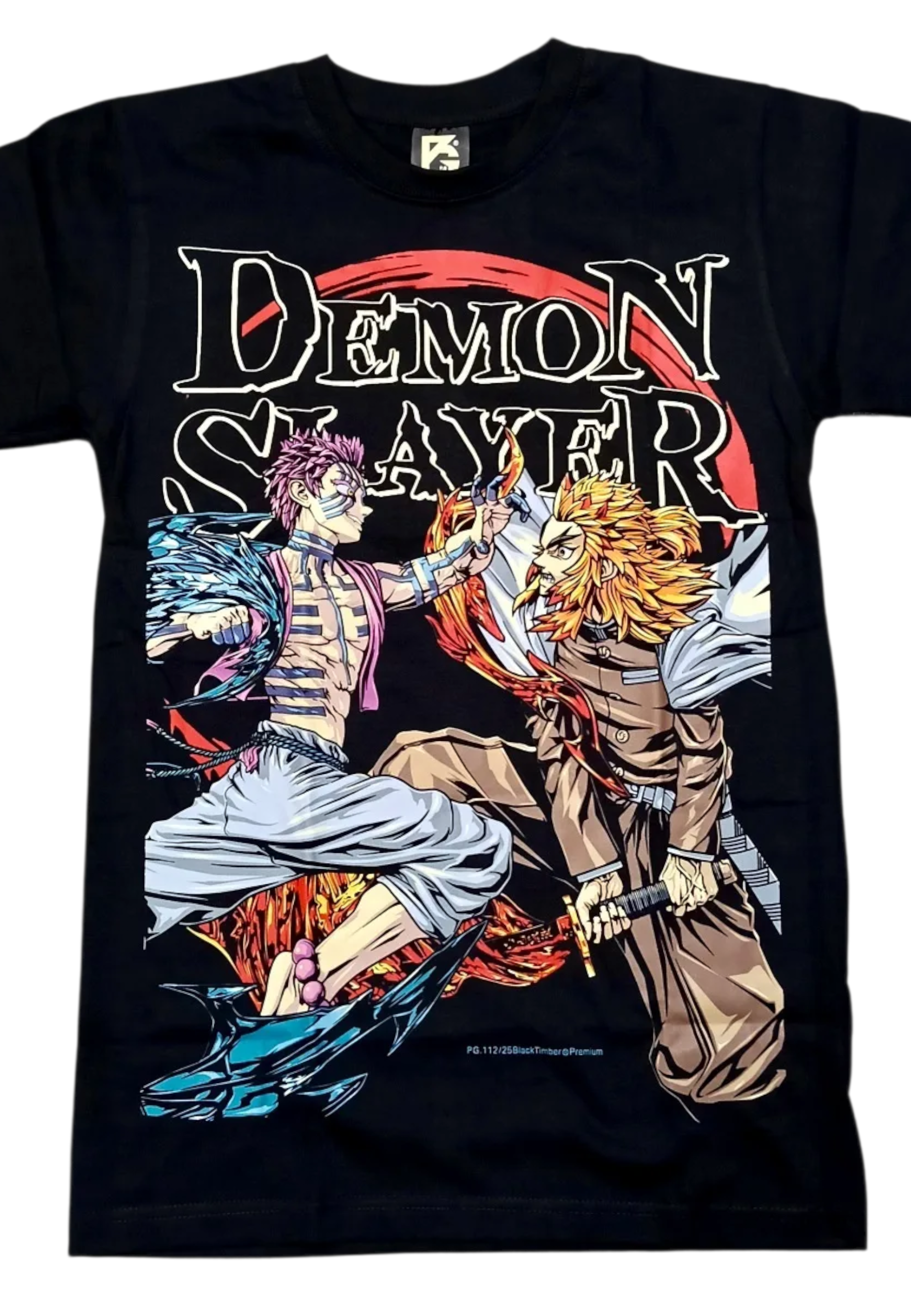 Epic, fiery, and packed with anime intensity β€” this premium tee features a powerful battle scene between Akaza (from the demon side of Kimetsu) and the legendary Flame Hashira Kyojuro Rengoku from Demon Slayer: Kimetsu no Yaiba. Printed in high-quality detail, the design captures the explosive clash that became one of the most unforgettable moments in the series.