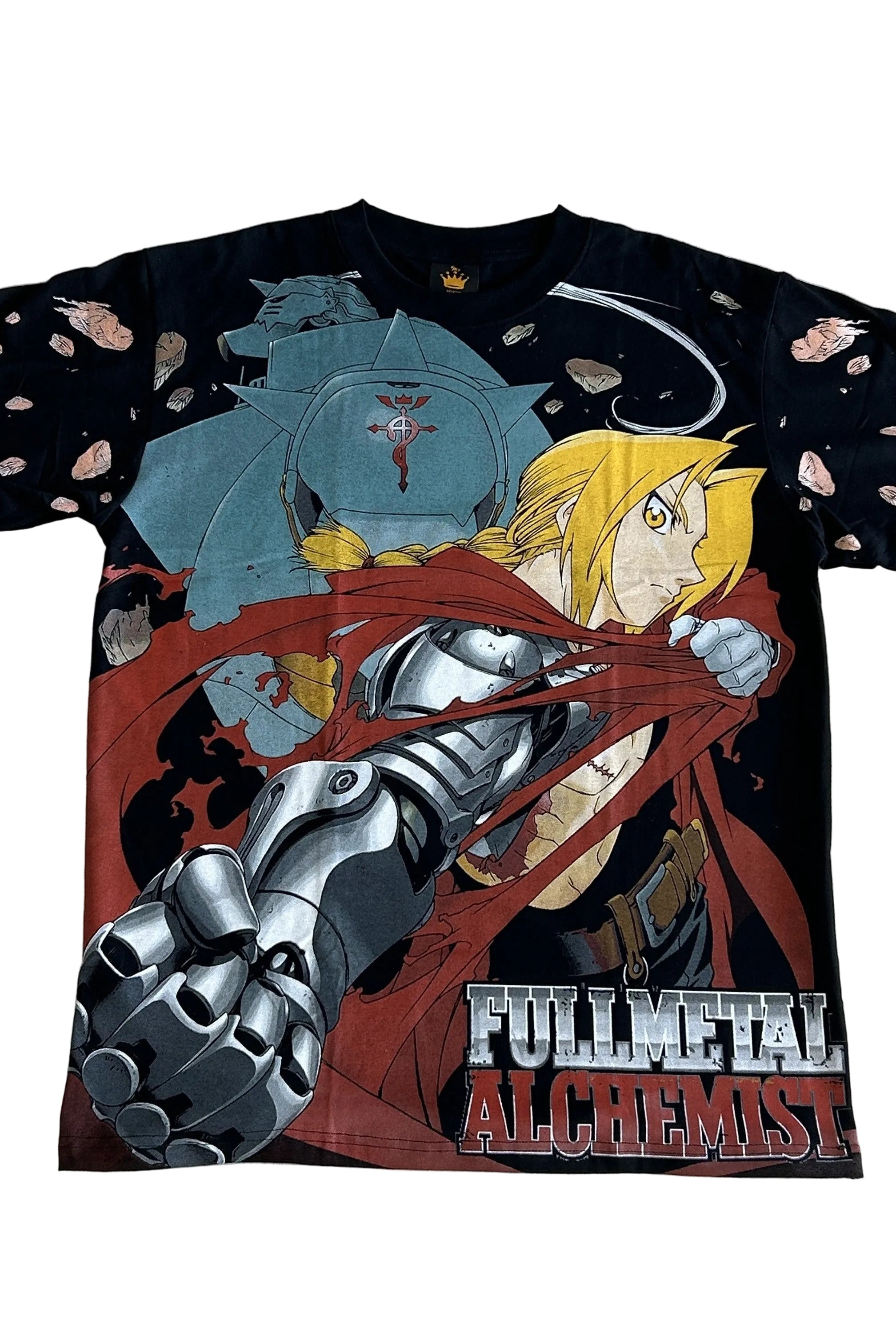 Alchemy, sacrifice, and unbreakable brotherhood come together in this striking tee featuring an all-over graphic print inspired by Fullmetal Alchemist. Showcasing powerful imagery from the series, this design captures the intensity, emotion, and iconic characters that have made Fullmetal Alchemist a cornerstone of anime history.