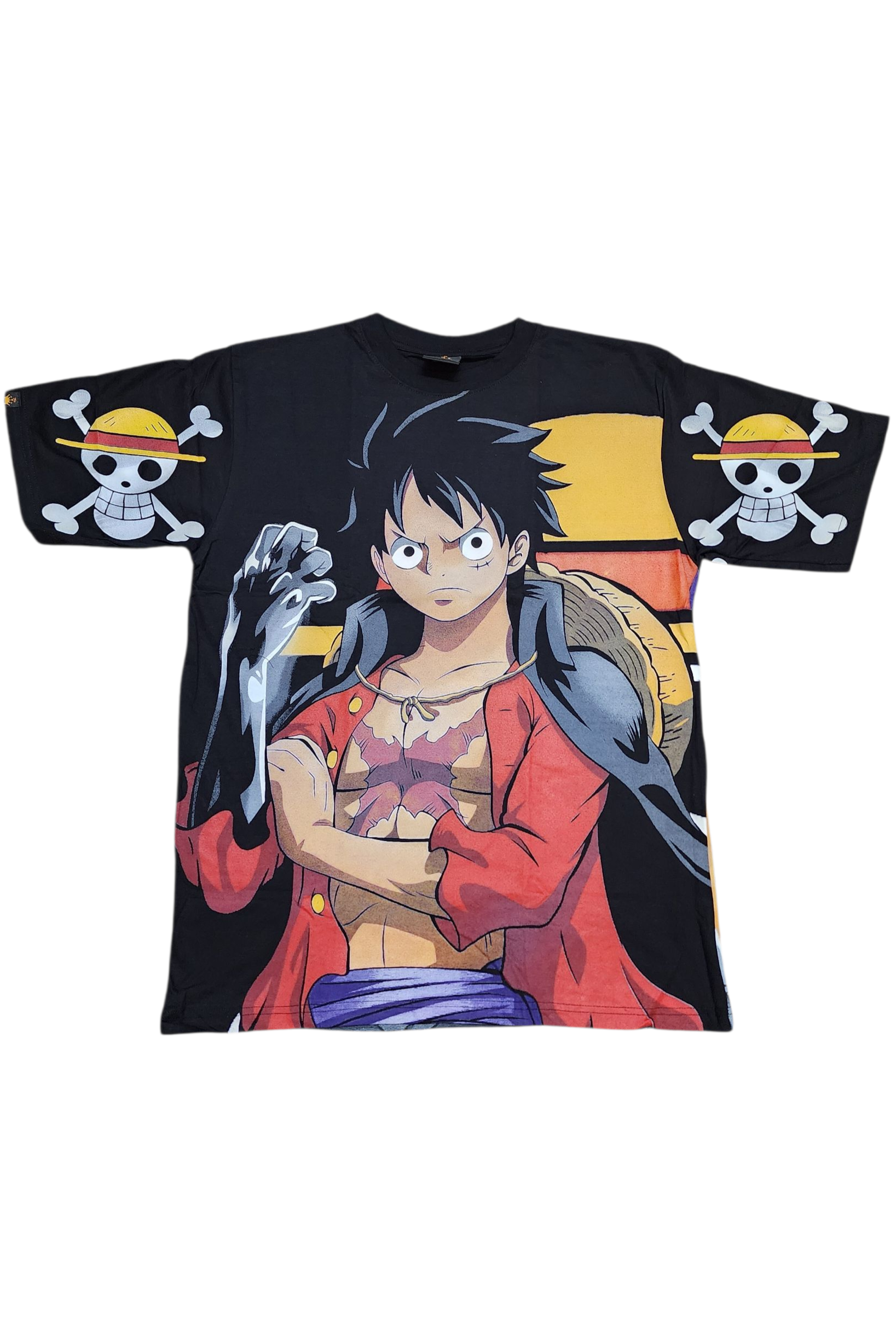 Show your Straw Hat pride with this powerful Monkey D. Luffy limited-edition tee, designed for fans who love bold artwork and true anime energy. The front features Luffy in a striking pose, backed by crisp, high-detail art that captures his fearless spirit. Each sleeve is finished with the classic Skull & Crossbones emblem — a perfect nod to the Straw Hat crew.