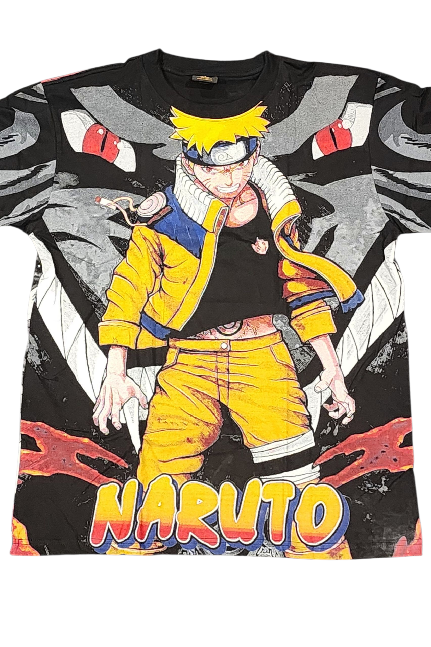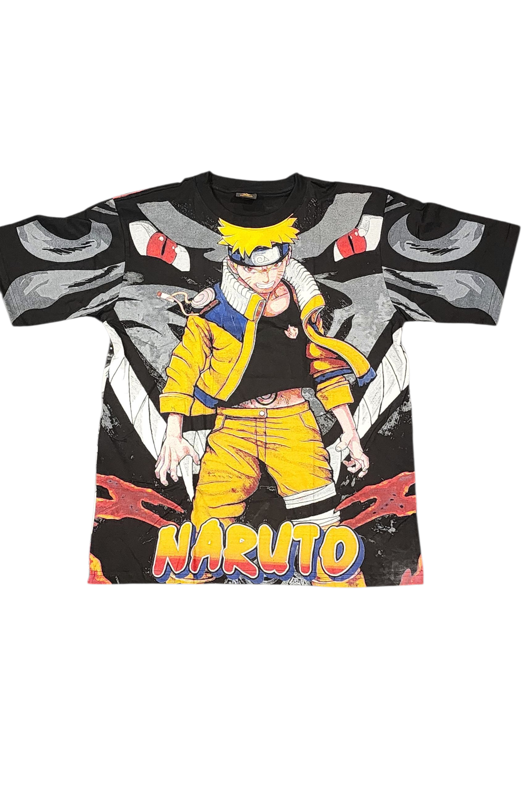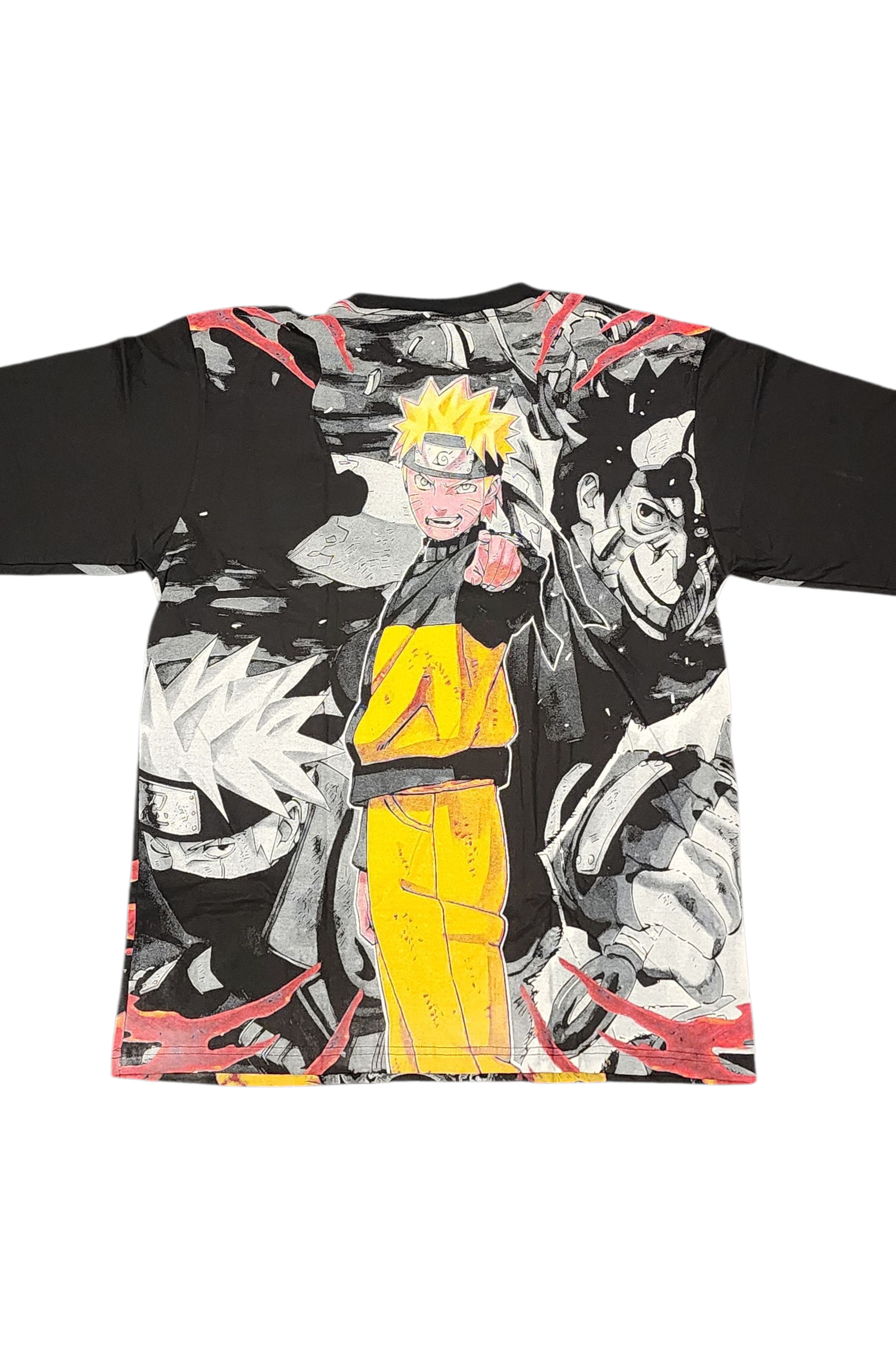 The front showcases Naruto Uzumaki battle-ready — fierce, focused, and radiating that unstoppable shinobi spirit. Flip it around and the back brings a deeper connection: Naruto standing strong, flanked by Kakashi Hatake and Obito Uchiha, creating a dramatic, emotional scene that highlights mentorship, rivalry, and destiny.