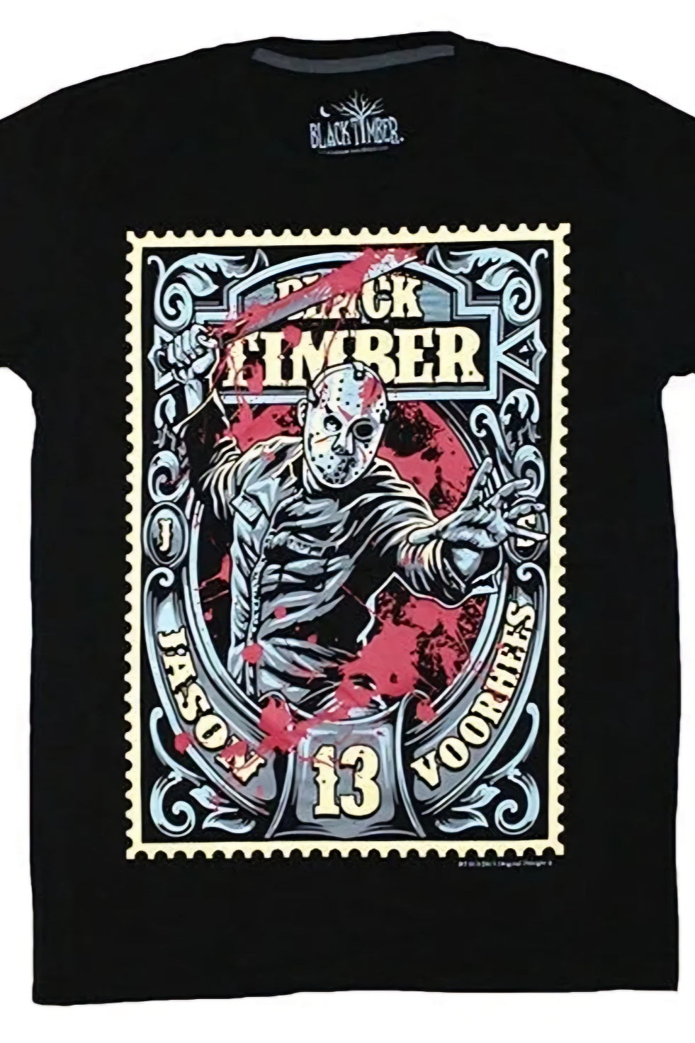 Straight from Camp Crystal Lake, this Jason Voorhees – Vintage Stamp T-shirt is a killer addition to any horror fan’s collection. Featuring a haunting postage stamp-style print of the iconic slasher in his signature hockey mask, it’s dripping with retro charm and eerie nostalgia.
