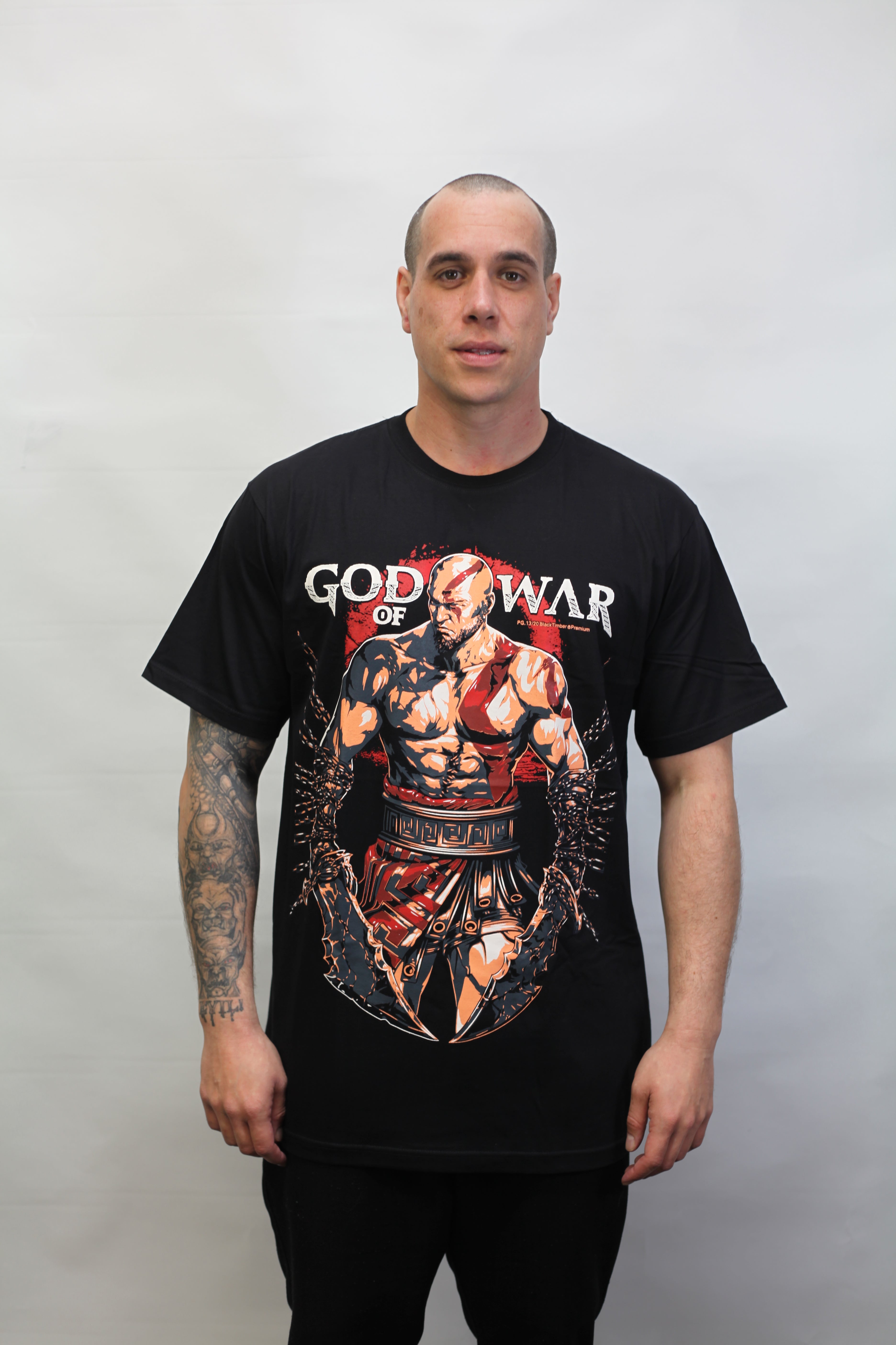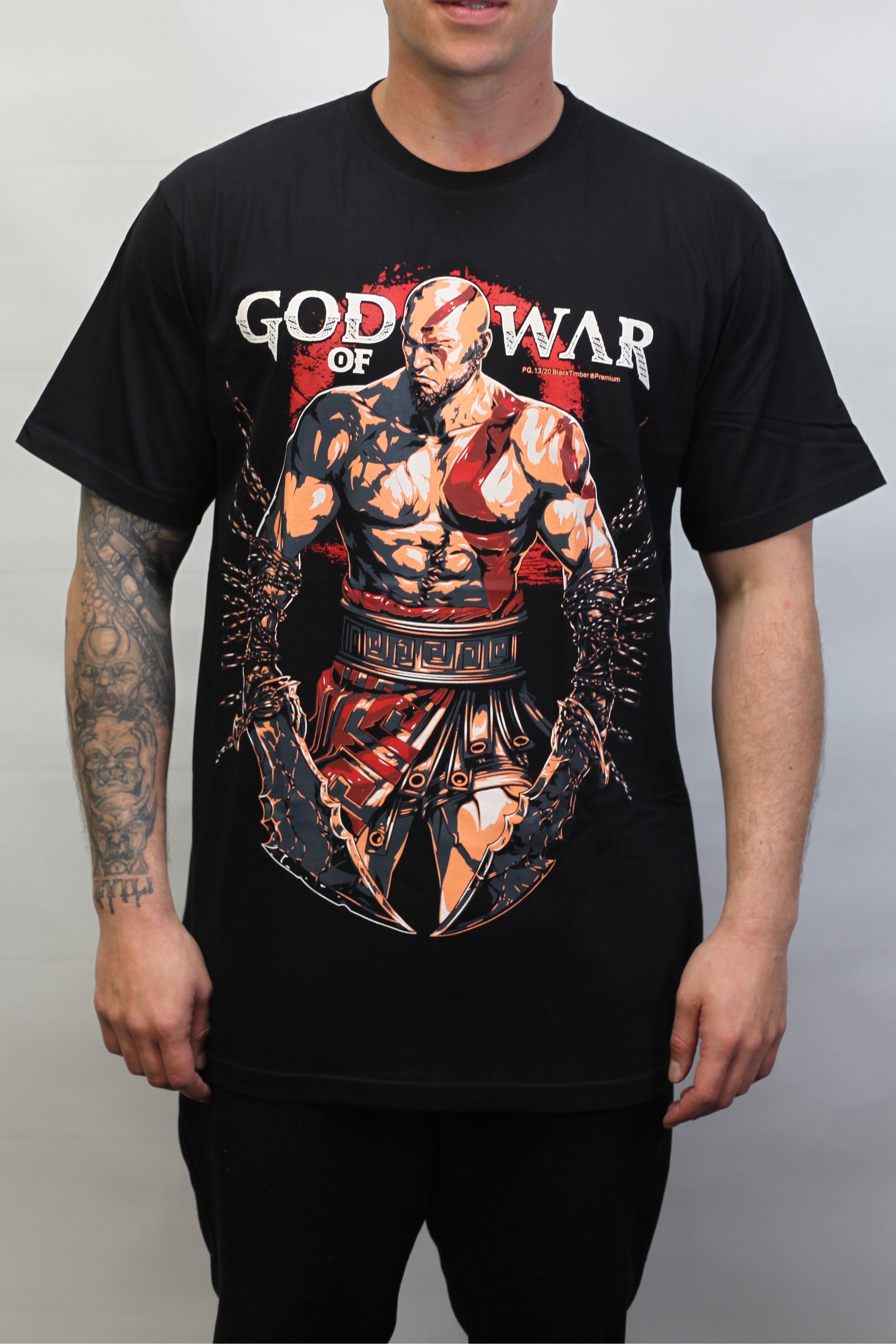 Unleash the fury of the gods with this God of War Kratos T-Shirt, featuring the Ghost of Sparta in a bold graphic design. With fierce artwork of Kratos mid-battle, this tee blends vintage style with raw power.