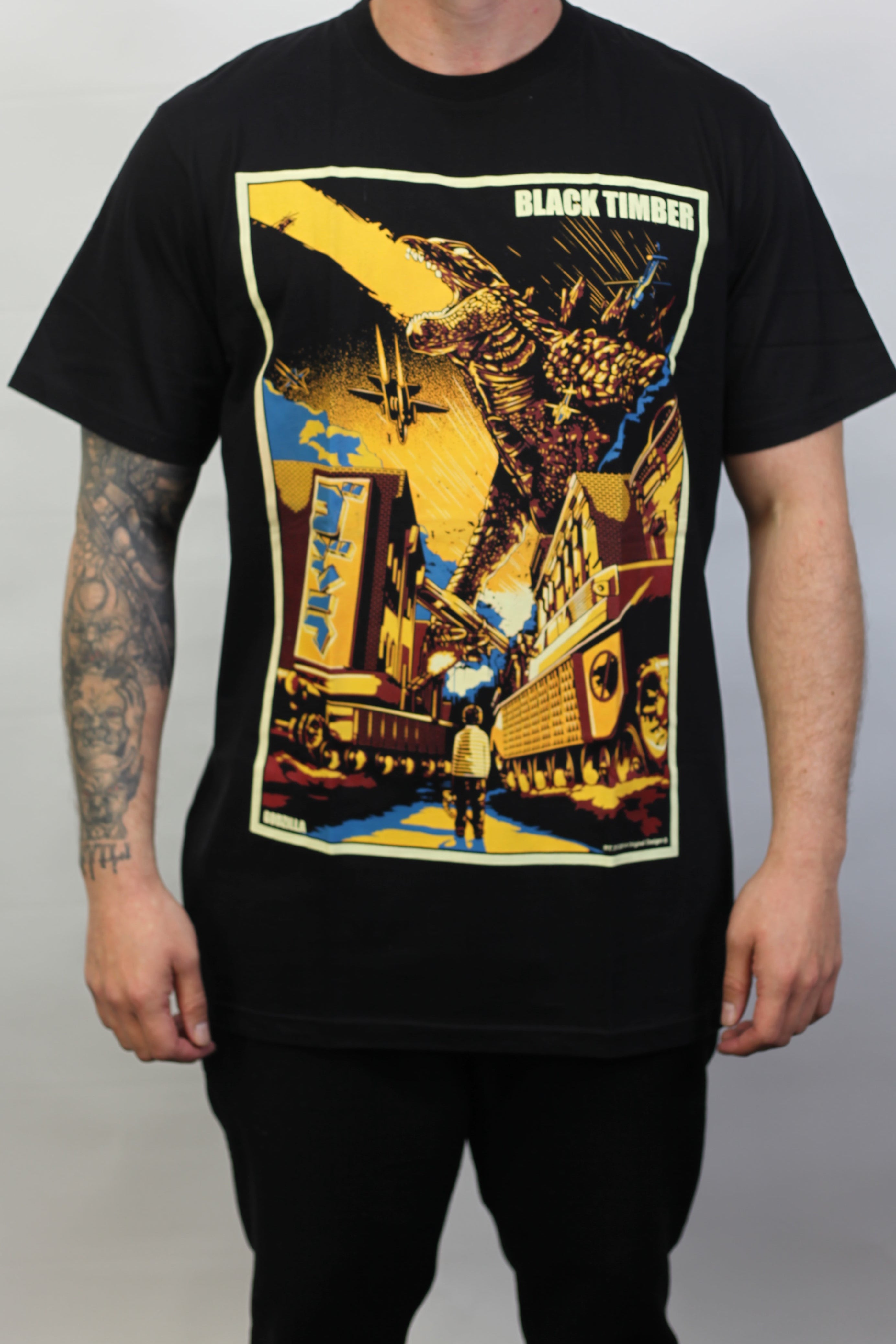 Printed on soft, breathable cotton, it’s perfect for fans of kaiju mayhem, retro sci-fi, and unstoppable style.