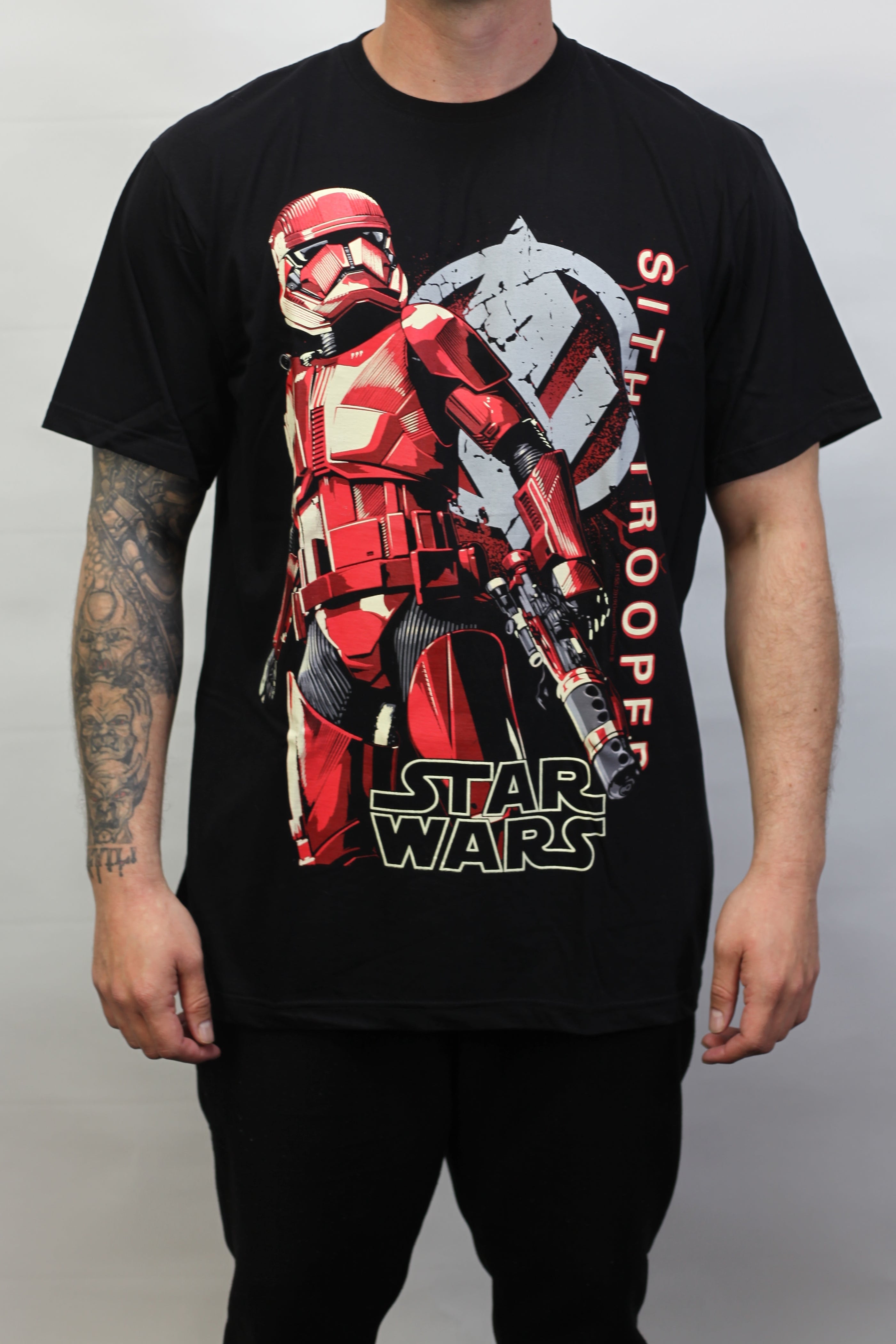 Embrace the power of the dark side with this high-quality black cotton T-shirt featuring bold graphic art inspired by the Sith Trooper from Star Wars.