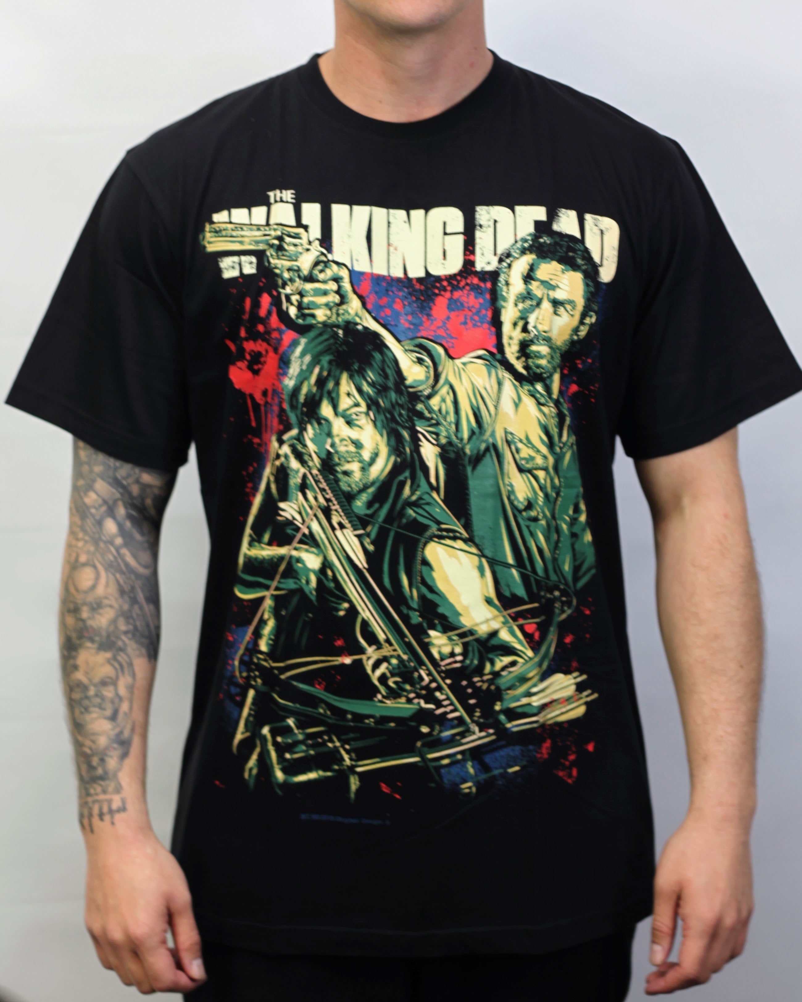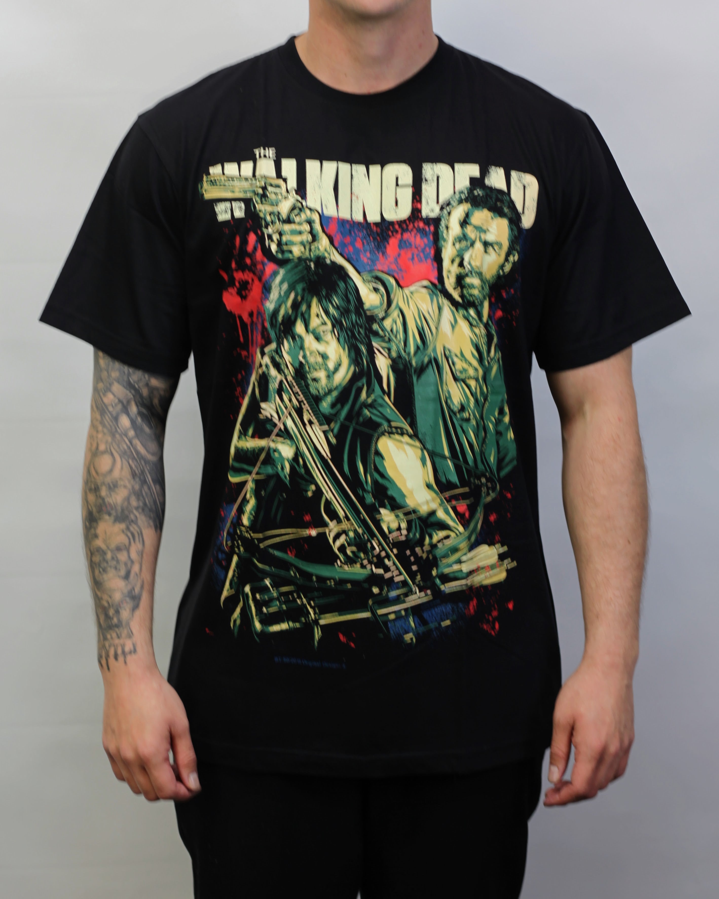 Brothers in arms through the apocalypse. This Walking Dead T-Shirt features Rick Grimes and Daryl Dixon—two of the series’ most iconic survivors—standing side by side, weapons ready and loyalty unshaken. Whether facing walkers or enemies, their bond and bravery define what it means to endure.