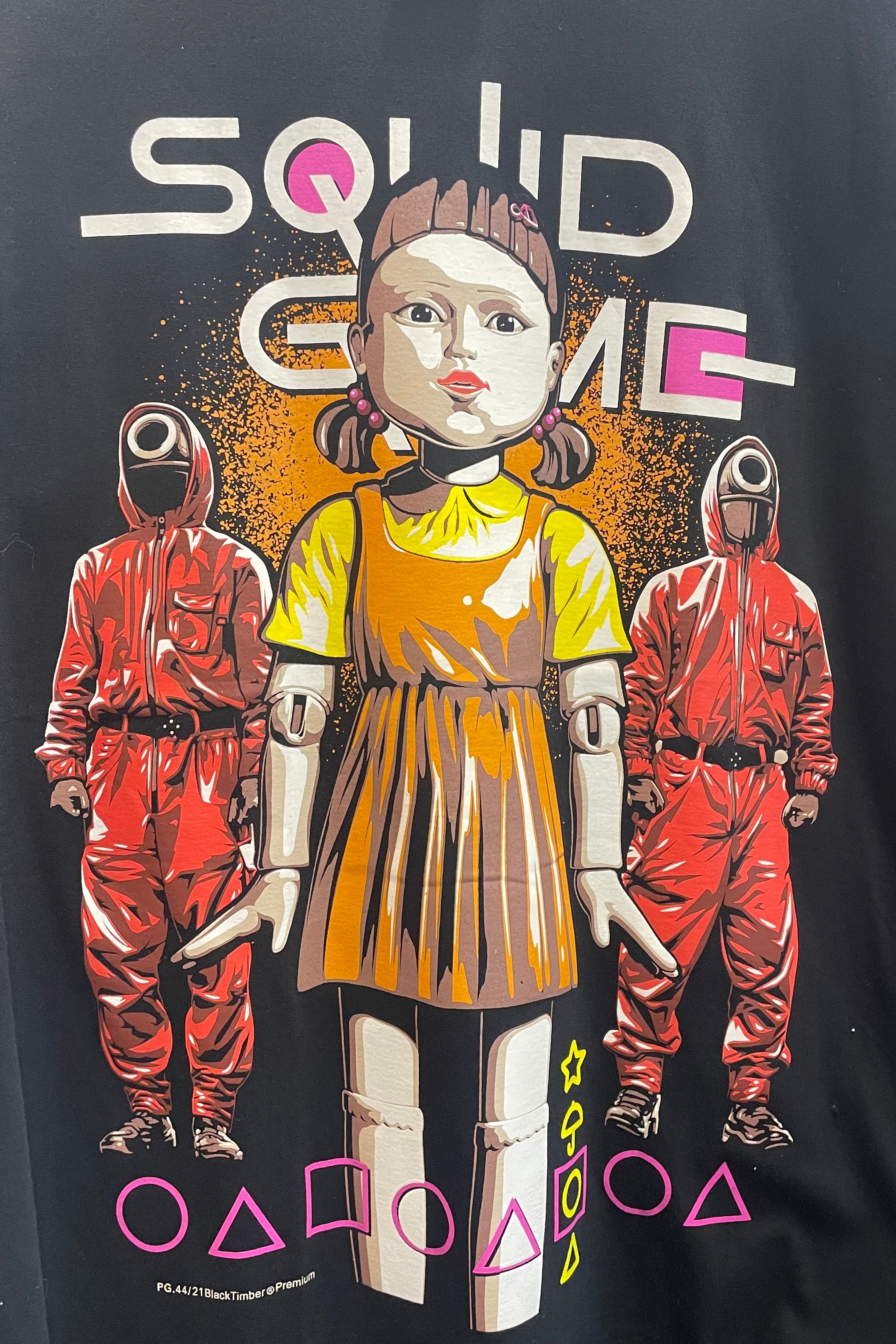 - Printed on a black T-Shirt.